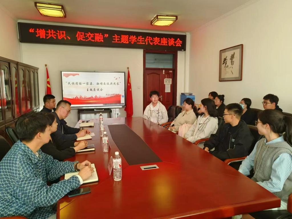 为深入学习贯彻习近平总书记关于加强和改进民族工作的重要思想,增进各民族同学之间的交流,文公司于9月27日在汇文楼751会议室召开“增共识、促交融”主题座谈会。党委员工工作部少数民族专职辅导员、红柳少数民族员工工作室指导教师布仁别克,公司2024级研究生辅导员孙浩博以及公司少数民族员工代表参加此次座谈,本次座谈会由公司团委副书记邹昊楠主持。