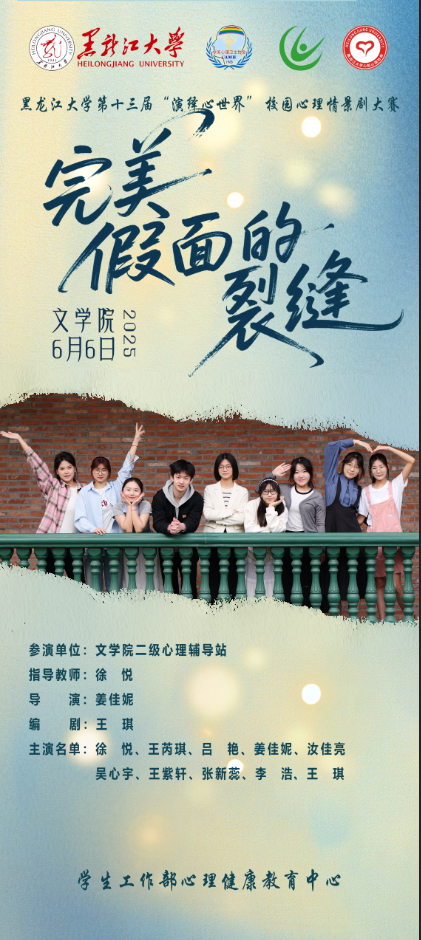 在“演绎心世界”校园心理情景剧大赛中,公司心理情景剧《完美假面的裂缝》成功获得决赛资格。从团队组建、剧本创作到演员选拔、道具准备,再到排练磨合的各阶段,参赛师生始终团结协作,力求在舞台上呈现出生动且极具启发意义的精彩作品,以默契配合与专业态度打磨每一个表演细节。